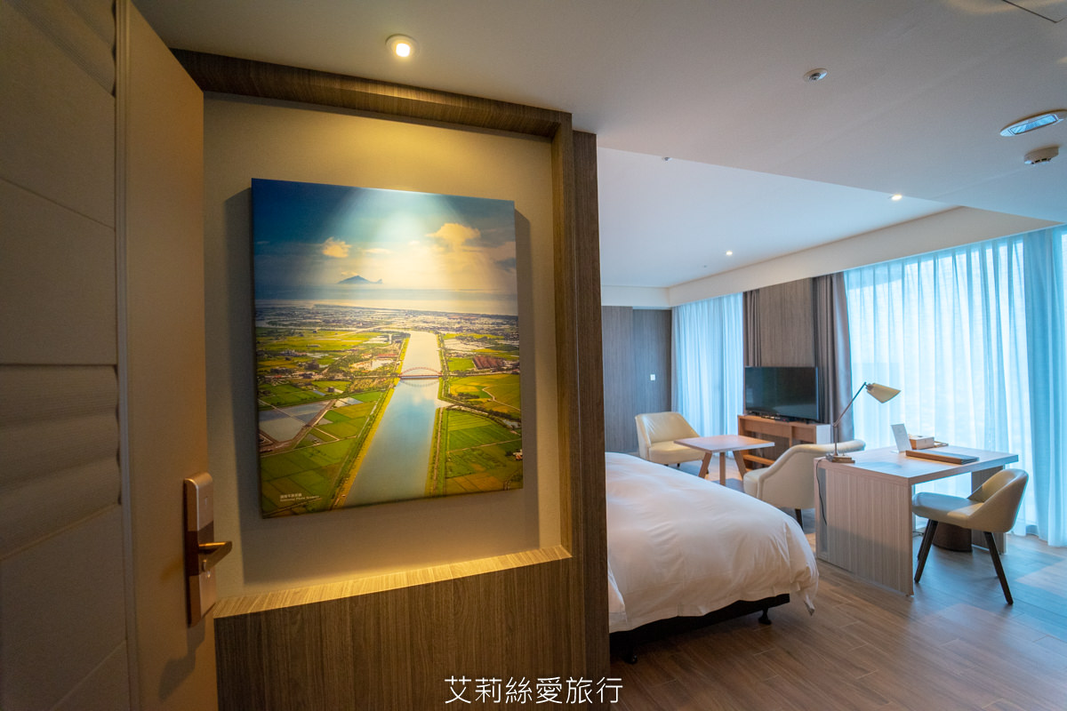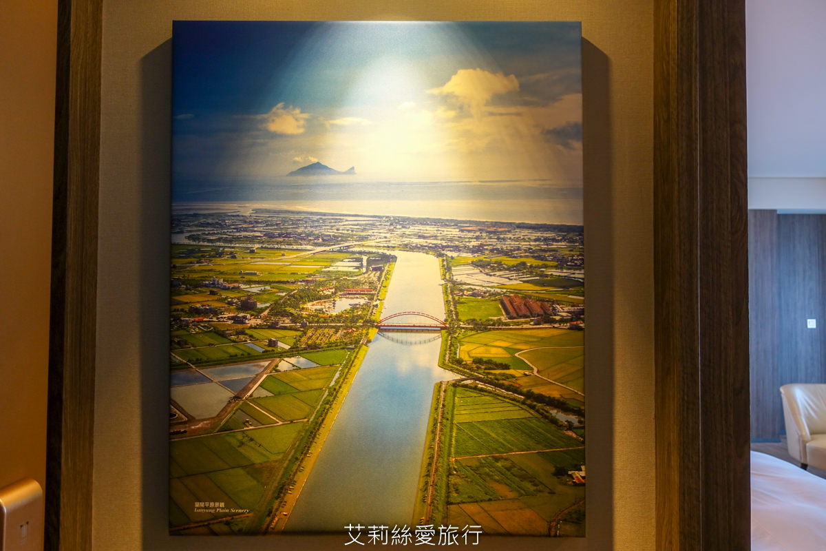 一推開門就有漂亮的宜蘭蘭陽平原及龜山島美景掛畫,