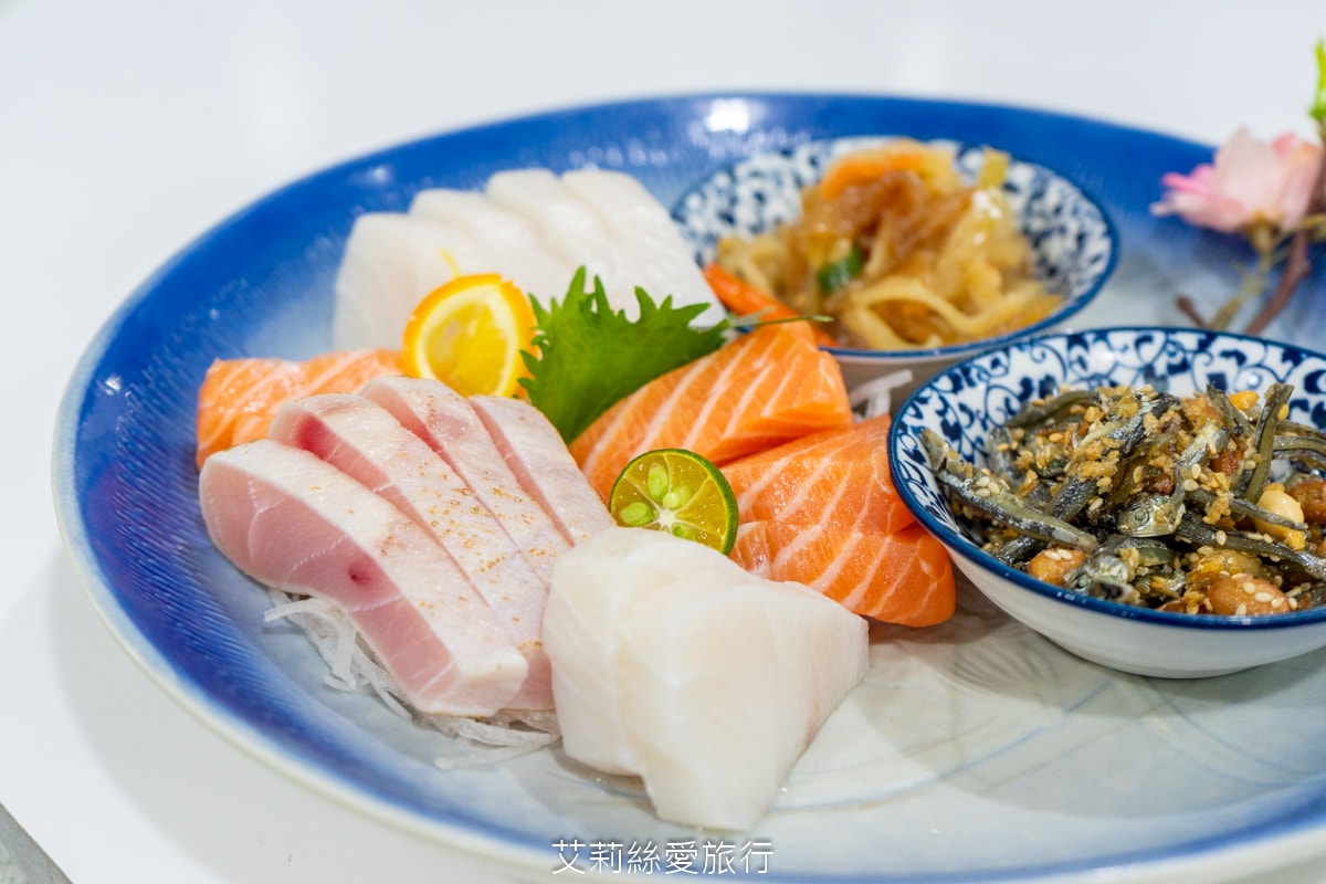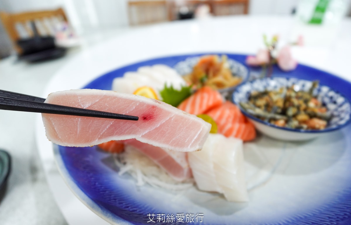 當天生魚刺身種類有旗魚、海鱺、鮭魚,