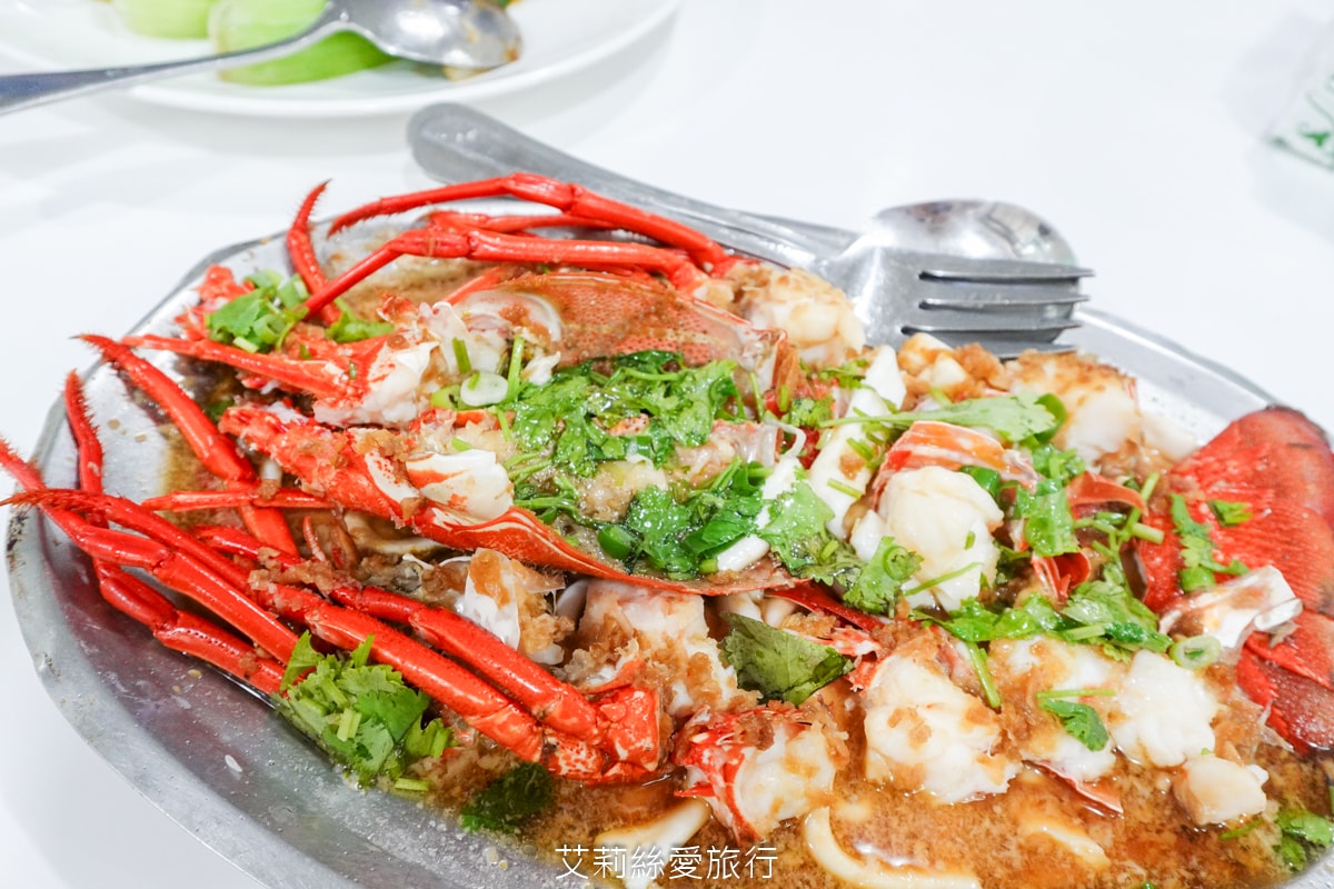 鮮滿樓的蒜蒸龍蝦板條份量大超大一盤,